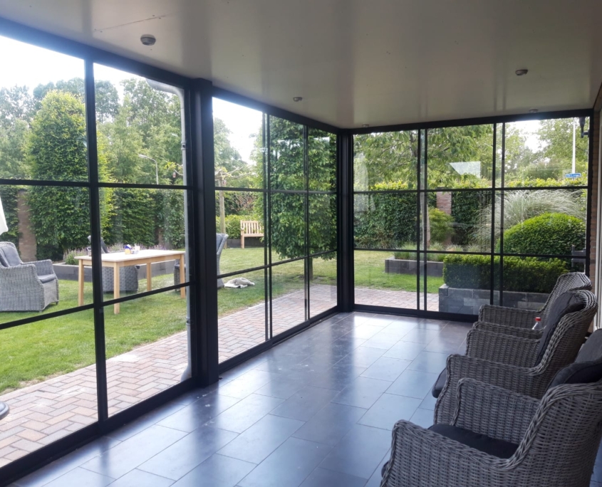Maak van uw veranda of overkapping een sfeervolle tuinkamer: met steellook schuifwanden geniet u het hele jaar door van uw buitenverblijf. De steellook uitvoering voegt daar de fraaie, industriële uitstraling van stalen raamwerk aan toe. Een uitstraling die past bij vele woonstijlen en uw veranda compleet maakt.