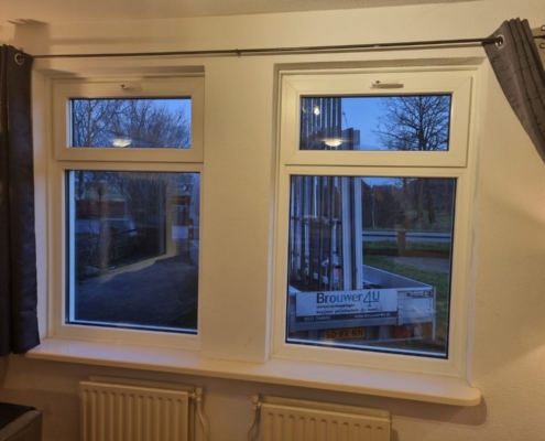 Renovatie van kunststof kozijnen, dakraam, valraam en een voordeur. In Nijeveen hebben wij kozijnen en deuren gemonteerd. Deze kozijnen en deuren zijn onderhoudsarm. Je hoeft ze nooit meer te schilderen!