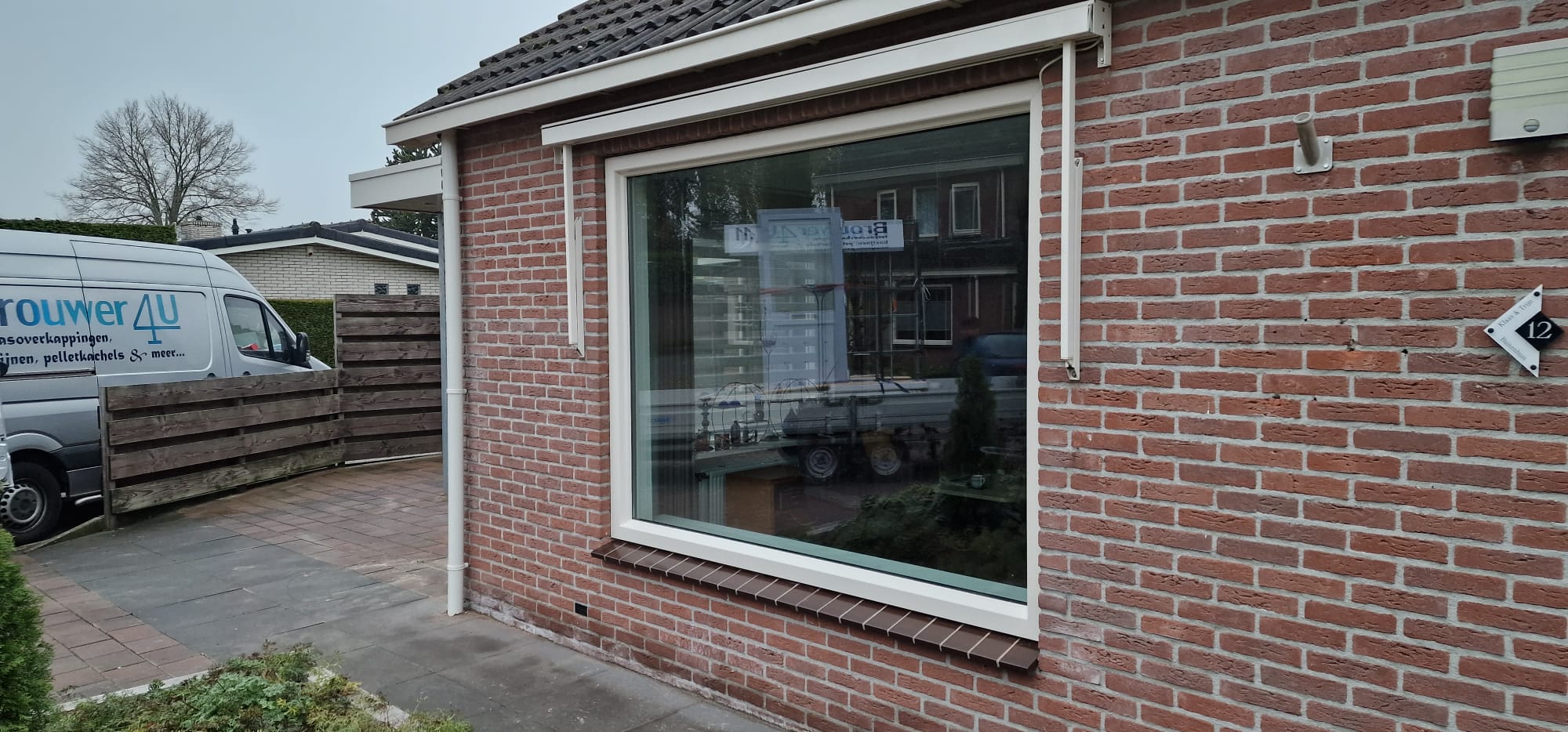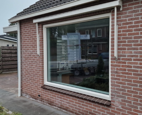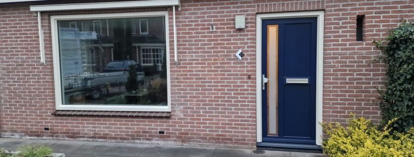 Bij een woning in Leusden hebben wij een nieuwe voordeur en kunststof kozijnen geplaatst. De voordeur heeft een mooie staalblauwe kleur en de kozijnen een crèmewitte kleur.